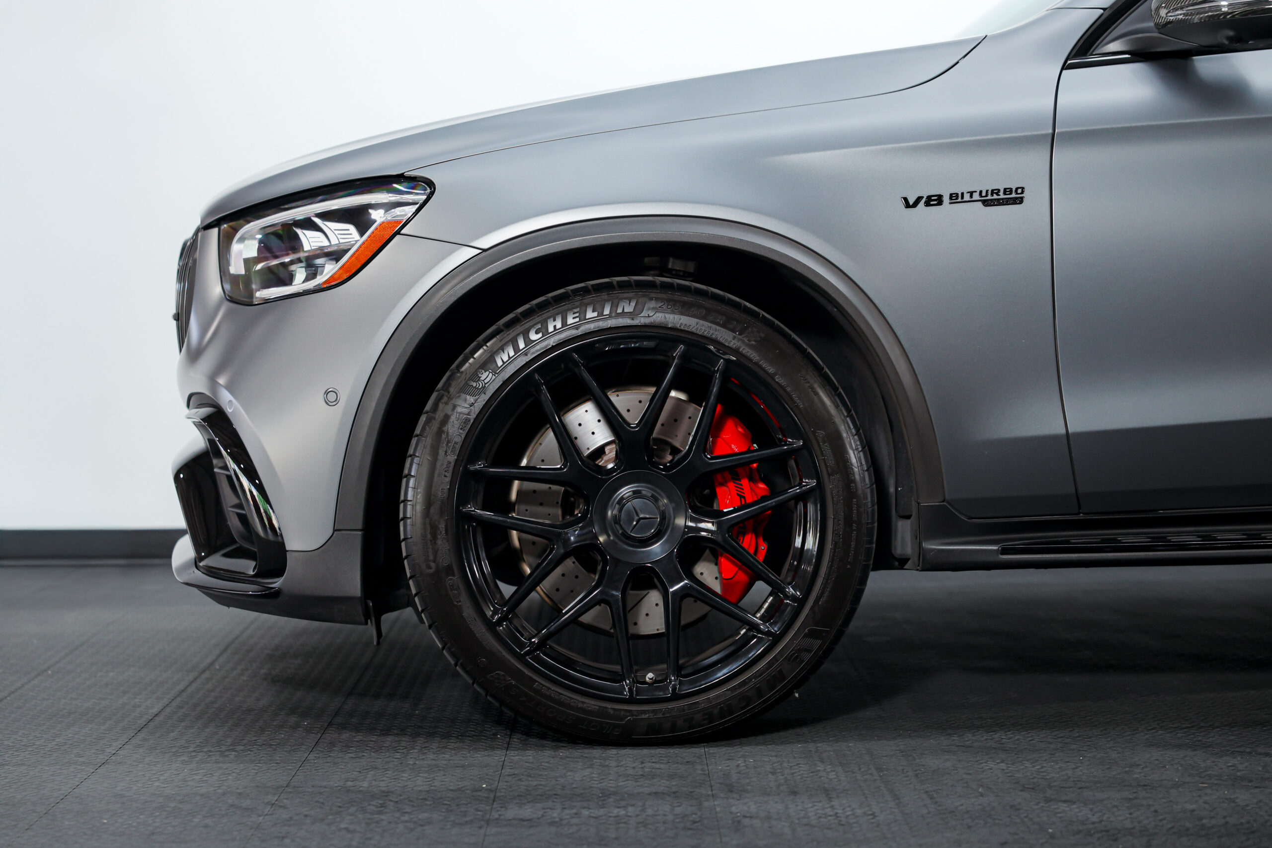 2021 Mercedes-AMG GLC 63 S Coupe finished in Designo Selenite Grey Magno delivers a perfect balance of supercar-level performance and everyday practicality. Powered by AMG’s handcrafted twin-turbo V8 and equipped with the AMG Aerodynamics Package, this GLC 63 S commands attention with its aggressive stance and luxurious presence.